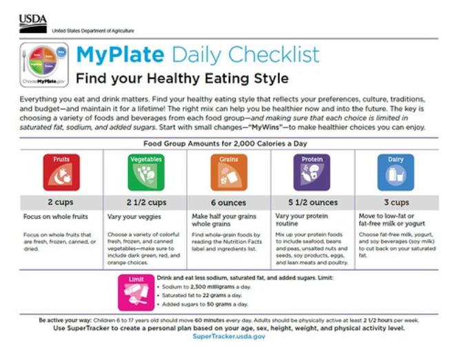 USDA (United States Department of Agriculture): Recommended My Plate Daily Checklist